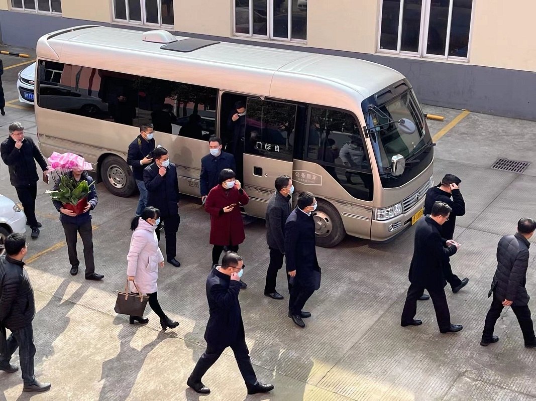 2022年2月10日上午11時許,泰州市海陵區(qū)區(qū)委書記孫群書記等領(lǐng)導(dǎo)一行來到我司進(jìn)行走訪調(diào)研,針對我司年度發(fā)展規(guī)劃提出指導(dǎo)性意見,我司董事長丁克芳先生及董事會成員陪同視察!
