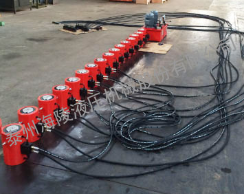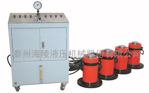 我公司設(shè)計(jì)制造的(PLC)同步千斤頂廣泛適用于大型建筑工程設(shè)備,構(gòu)件的同步起頂、調(diào)整及鐵路、公路、橋梁工程的架設(shè)。它可根據(jù)現(xiàn)場(chǎng)的實(shí)際情況選配不同規(guī)格、型號(hào)、數(shù)量的超薄型JRSM系列、薄型JRCS系列、大噸位DYG系列10T、20T、30T、50T、100T、150T、200T、320T、500T千斤頂。以及配備1.1KW、2.2KW、3KW、4KW、5.5KW、7.5KW、13KW等不同規(guī)格的泵站,同時(shí)配備不同長(zhǎng)度的高壓油管和合適的分配閥,采用一泵拖多頂?shù)姆椒ㄒ詽M(mǎn)足適應(yīng)施工現(xiàn)場(chǎng)的作業(yè)要求。